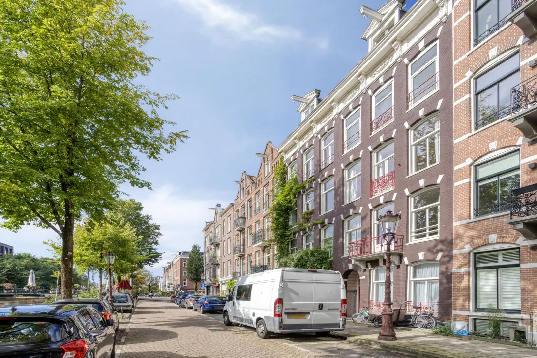 De woning is gelegen nabij de hoek van de Jacob van Lennepkade en Bilderdijkstraat in het populaire Amsterdam Oud-West en heeft fraai uitzicht op het water.