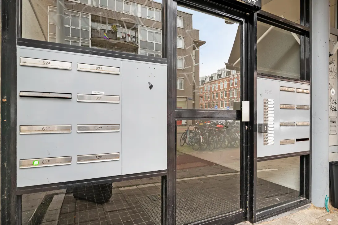 Rented flat (73 m2) on Jan Pieter Heijestraat on the first floor (first staircase) in an apartment complex on the corner of Kinkerstraat/Jan Pieter Heijestraat (Amsterdam-West) with a sunny private balcony (9 m2) at the rear and a balcony across the entire width of the building at the front. Includes extra storage space in the basement.
