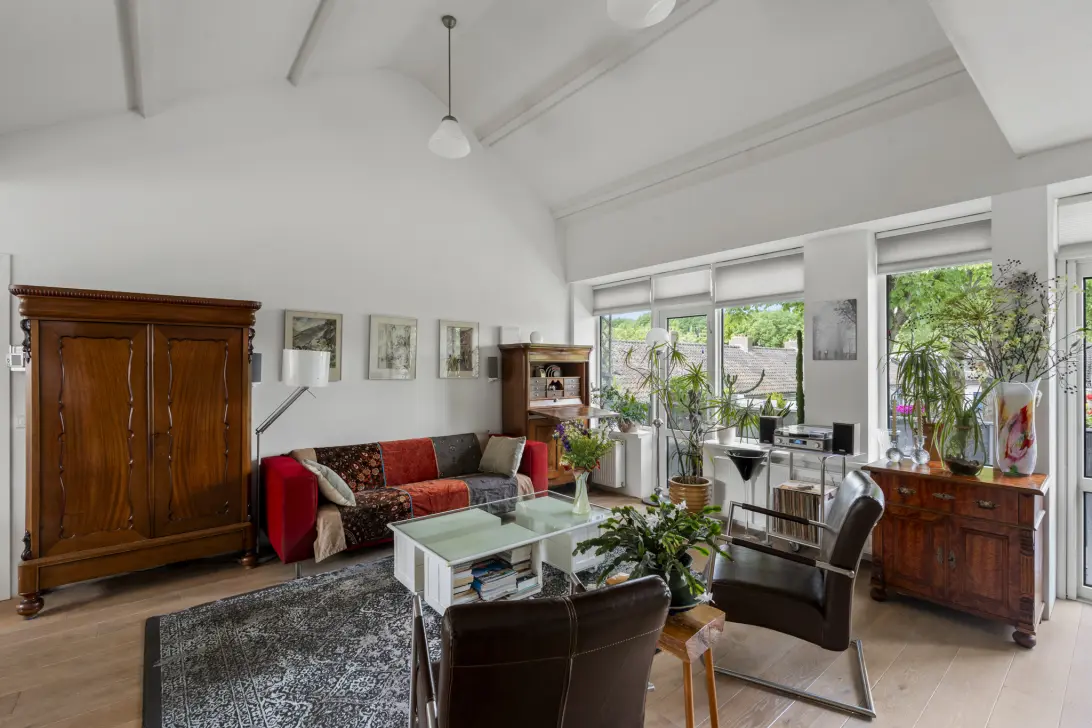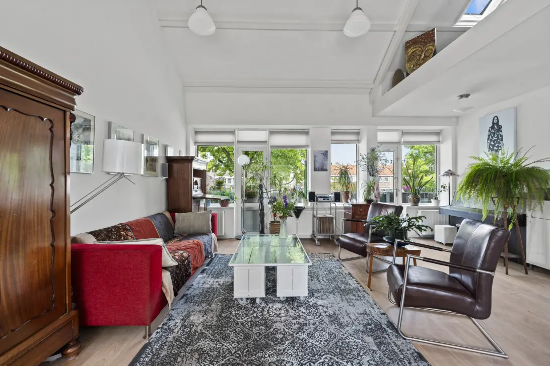 Via een eigen entree bereik je de woonverdiepingen. De lichte woonkamer met entresol vormt het hart van de woning. Hier geniet je van een open sfeer en toegang tot het zonnige balkon, ideaal voor lange zomeravonden.