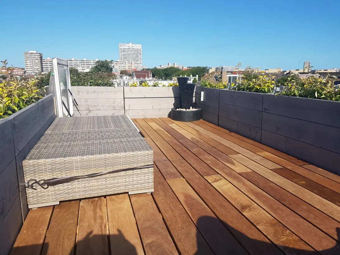 Op de 2e verdieping zijn 2 slaapkamers waarvan 1 kamer met balkon en er is een uitschuiftrap naar de fantastische daktuin met panoramisch, 360 graden uitzicht over Zandvoort. De daktuin is volledig omringt door plantenbakken en hier kan je heerlijk loungen zonder dat iemand je ziet.