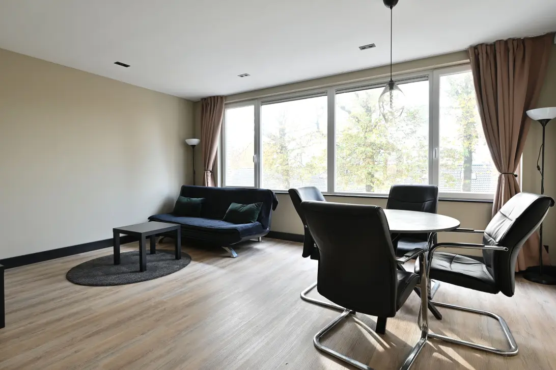 - Het gehele appartement is voorzien van glad stucwerk, een pvc vloer met hoge witte plinten, vloerverwarming en inbouwspots.