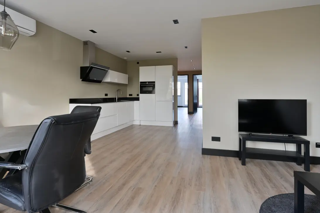 The apartment has a luxurious and extensive kitchen with built-in appliances from the brand Siemens, luxurious bathroom with a walk-in shower, 2 nice bedrooms, a spacious living room and separate toilet. Furthermore, the house has a laundry room and spacious entrance hall with the possibility of creating, for example, an extra workplace or playroom. The house is characterized by its good finish, smooth stucco walls, beautiful PVC floor with high black skirting boards, underfloor heating and recessed spotlights.
