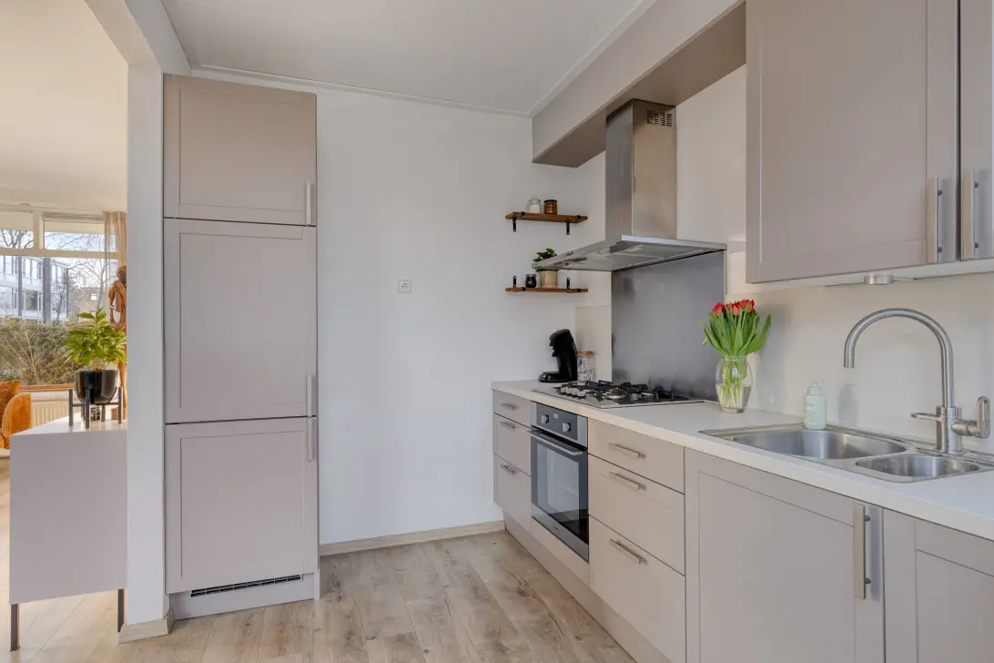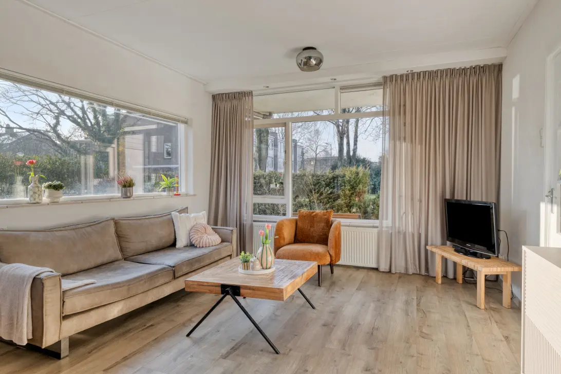 Bij binnenkomst van deze 4-kamer woning is direct de eerste eyecatcher de afwijkende plafondhoogte (ruim 5 meter), hetgeen een ruimtelijk effect geeft en daarmee de woning extra bijzonder maakt. Zowel de voorzijde van de woning als de achtertuin grenzen aan een groenstrook, waardoor u geen directe buren heeft, hetgeen de nodige privacy geeft in de woonkamer én de achtertuin. Opvallend zijn ook de grote raampartijen die zorgen voor een fijne daglichttoetreding. Heeft u groene vingers…dat komt dan mooi uit, want u heeft hier de beschikking over een perceeloppervlak van ruim 230 m2.