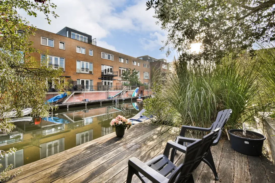 Aan de geliefde Jan Vrijmanstraat op IJburg ligt dit stijlvolle herenhuis van ca. 155 m², verdeeld over drie woonlagen met een zonnige tuin direct aan het water. In 2024 is de woning hoogwaardig gerenoveerd en voorzien van een nieuwe keuken, strak gestuukte wanden, nieuwe vloeren en modern hang- en sluitwerk – volledig instap klaar. Het huis combineert ruimte, comfort en luxe met een ontspannen maritiem gevoel: vanuit je eigen tuin kun je zelfs een bootje aanleggen. De royale living met open keuken, vier ruime slaapkamers en twee badkamers bieden volop leefruimte voor het hele gezin. Dankzij de hoge plafonds en grote raampartijen ervaar je hier een uitzonderlijk gevoel van licht en ruimte. Met een inpandige garage én een extra parkeerplaats in de ondergelegen parkeergarage is dit een uniek herenhuis op een van de meest gewilde locaties van IJburg.