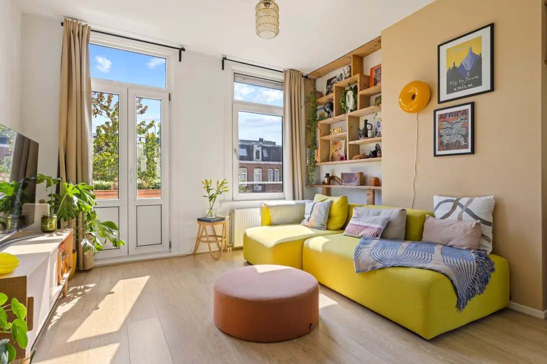 The apartment on the third floor is accessed via the well-maintained communal staircase. Upon entering the apartment, the first thing you notice is the abundance of natural light and the playful layout of the living room. At the front, there is a sitting area with a French balcony facing south, offering beautiful views over Javastraat. The modern open kitchen is equipped with various built-in appliances and opens directly onto the balcony. At the rear, there is a spacious and quiet bedroom (no upstairs neighbors)! The adjacent fixed closet is ideal for a washing machine/dryer. The bathroom is centrally located and features a walk-in shower, sink, and toilet. Under the stairs to the 4th floor, a practical workspace has been created.