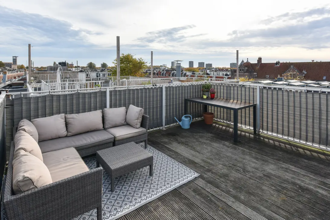 Superb penthouse apartment of 64 m2 with large rooftop terrace on the lively Javastraat in Oost!