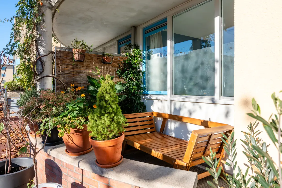 Het appartement is zowel toegankelijk via de gemeenschappelijke entree als via de eigen deur bij het terras. Het terras is gelegen op het zuiden en hier heb je van de vroege ochtend tot einde middag zon in de zomermaanden. De woonkamer is ook gelegen op het zuiden en door de hoekligging en vele raampartijen heb je van de ochtend tot namiddag zon in huis en sowieso veel daglicht.