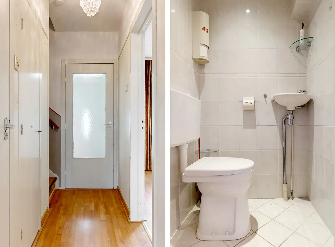 Overloop met toegang tot alle vertrekken. Op deze verdieping bevinden zich 3 slaapkamers die allemaal voorzien zijn van een vaste kast. De grote slaapkamer aan de achterzijde heeft bovendien een wastafel en een praktische “losse” kast. De compacte badkamer is voorzien van een douche, wastafel en 2e toilet.