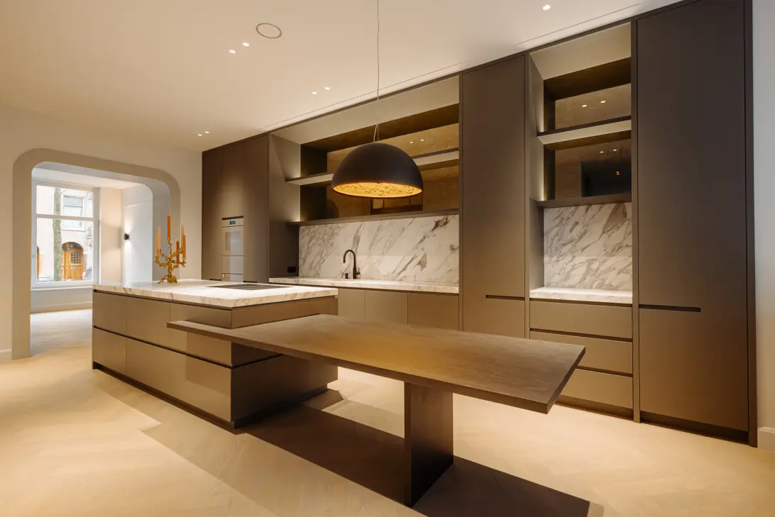 - Alle inbouwkasten en de keuken zijn op maatwerk ontworpen