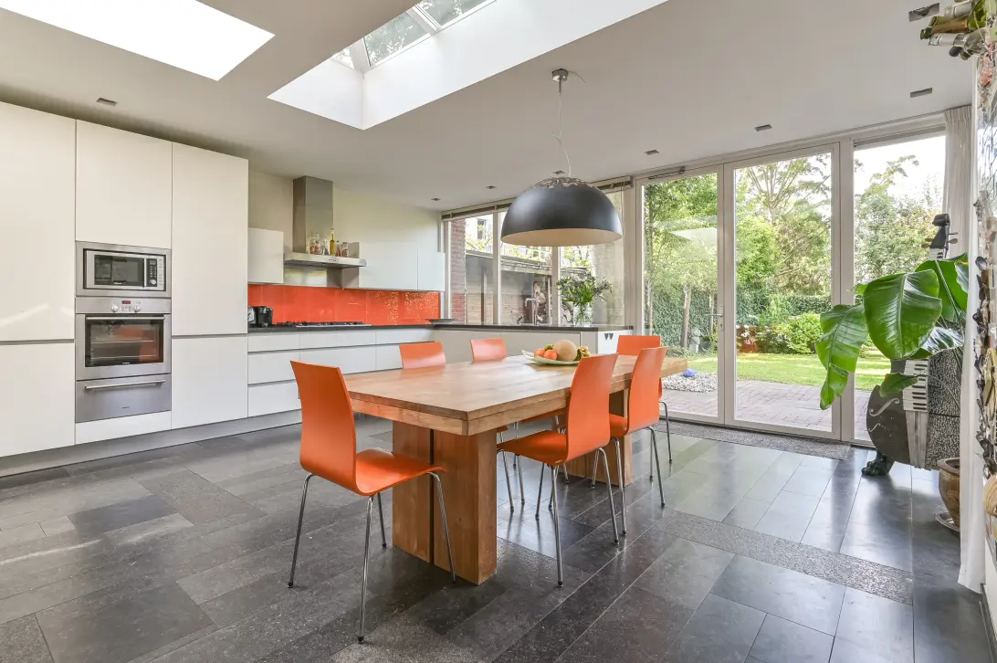 Riante woonkeuken (2006) en diepe tuin