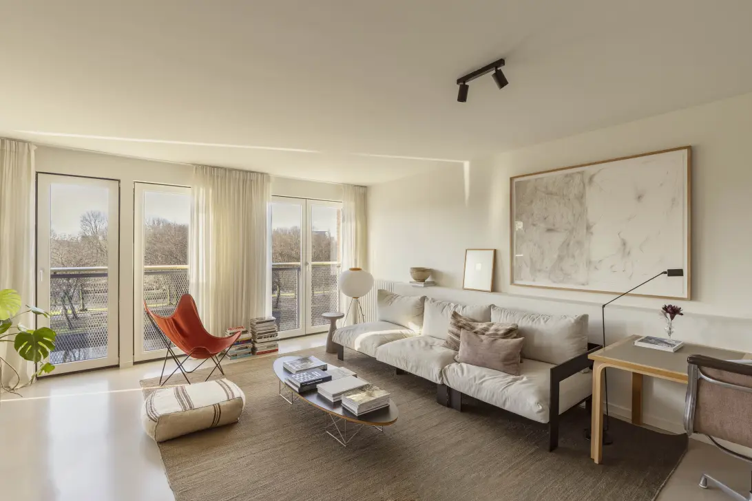 Impeccably renovated (2022) and energy-efficient (A-rated) home with expansive views over Erasmus Park. This approximately 116 m² duplex apartment spans the fourth and fifth floors of a well-maintained 2003 building with elevator, and includes a private parking space and a storage unit in the basement. Premium materials and thoughtful details are woven throughout: in the layout, the finishes, and every considered choice in between.