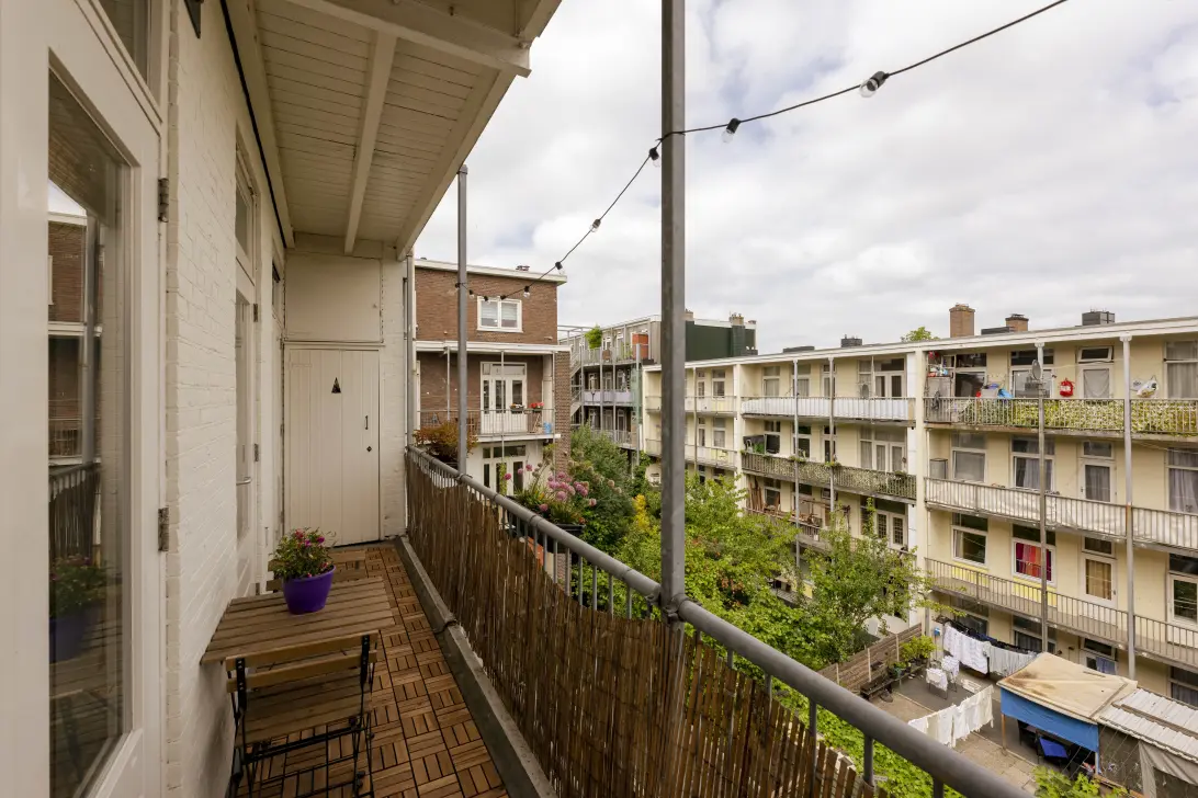 Welcome to Joos Banckersweg, a quiet, green street in the popular Bos en Lommer neighborhood of Amsterdam-West. This well-laid-out 2-bedroom apartment of approximately 76 m² is located on the third floor. With two bedrooms, a spacious living area featuring authentic details, and a sunny east-facing balcony, this is the ideal home for those seeking comfort and character in the city.