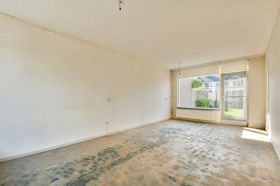 Via de voortuin bereikt u de entree van de woning. De hal, voorzien van de meterkast en het toilet, biedt toegang tot de zonnige woonkamer. De keuken is aan de tuinzijde gesitueerd en biedt eveneens toegang tot de achtertuin.
