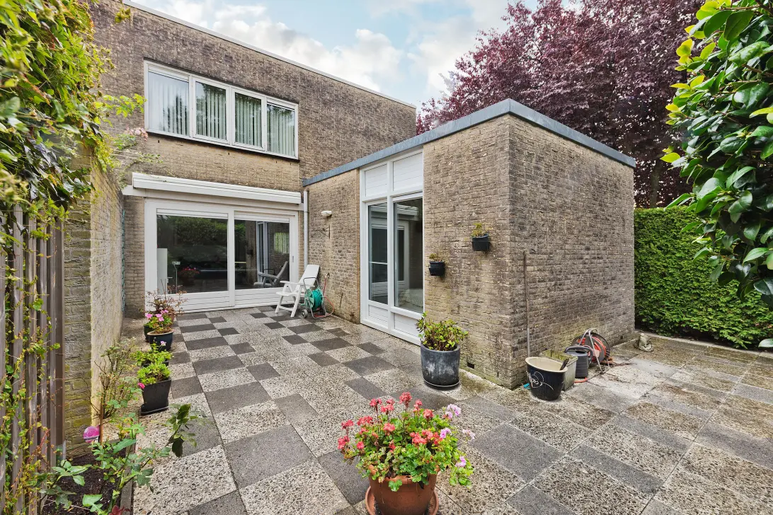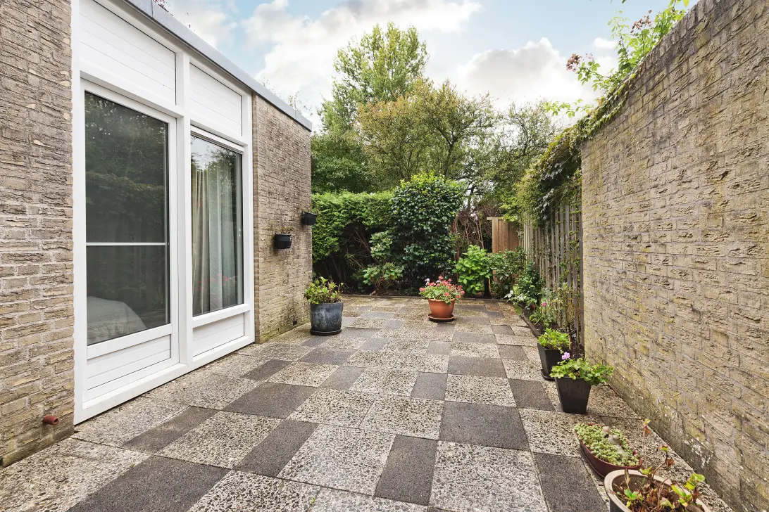 De woning heeft een betegelde voor-, zij- en achtertuin. Via de afgesloten deur aan de zijkant, bereikt u de achtertuin. De tuin grenst aan de zijkant aan een groenstrook. De tuin is groot genoeg voor een loungeplek en om een eettafel te plaatsen om in de zomer gezellig buiten te eten. Door de hoekligging heb je veel privacy en is ZUIDWEST gelegen.