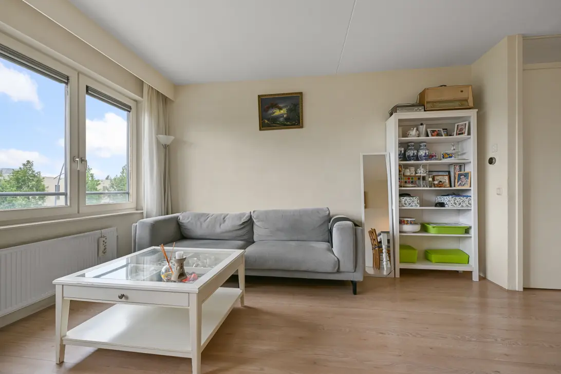De woonkamer bevindt zich aan de achterzijde van het appartement en biedt een uitzicht over de wijk. Er is meer dan genoeg plek voor een sfeervolle zithoek én een gezellige eethoek. De open keuken sluit hier naadloos op aan en is compleet uitgerust met alles wat je nodig hebt om de lekkerste gerechten te bereiden.