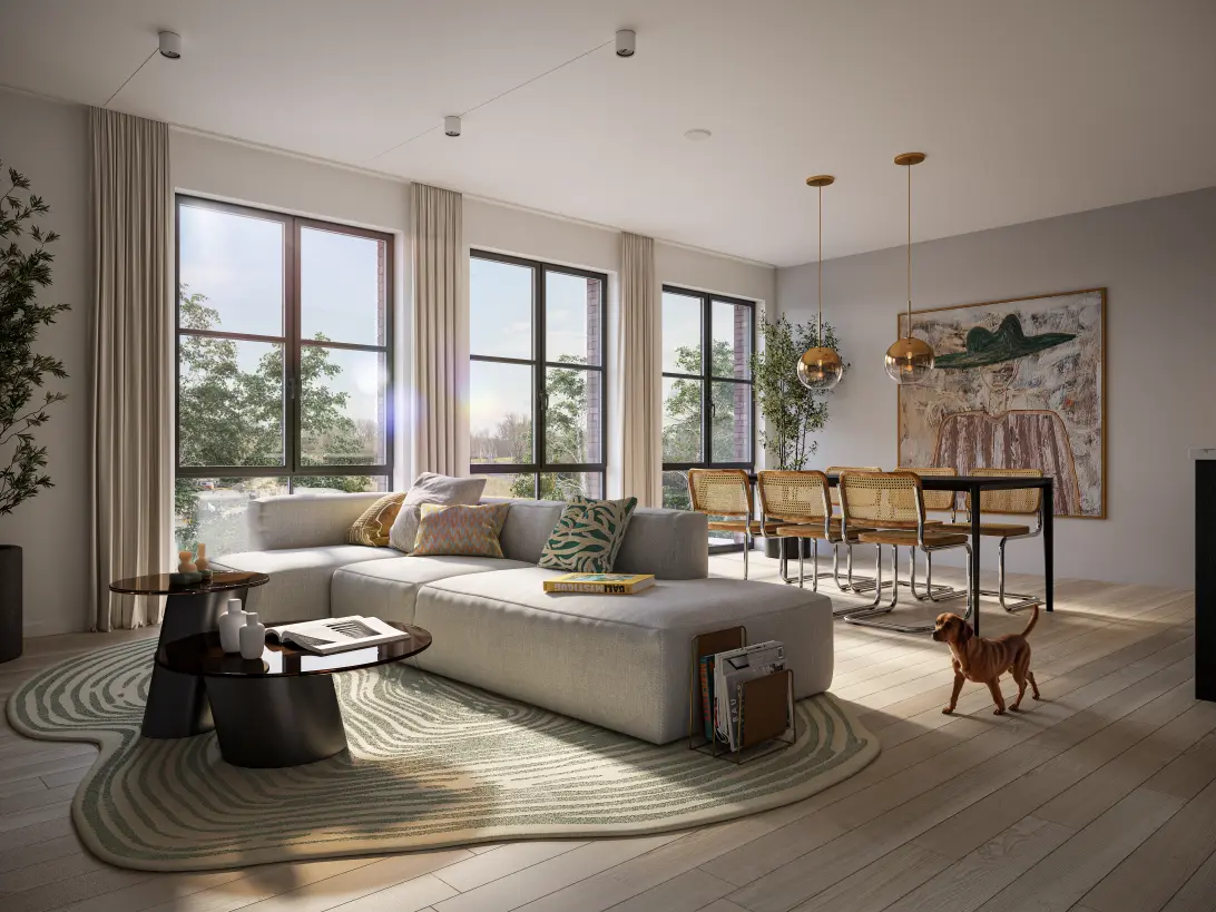 Open leefruimte en zonnig balkon