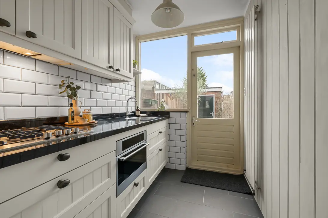 De keuken bevindt zich aan de achterzijde van de woning en is geplaatst rond 2005. De nette keuken biedt direct toegang tot de achtertuin.