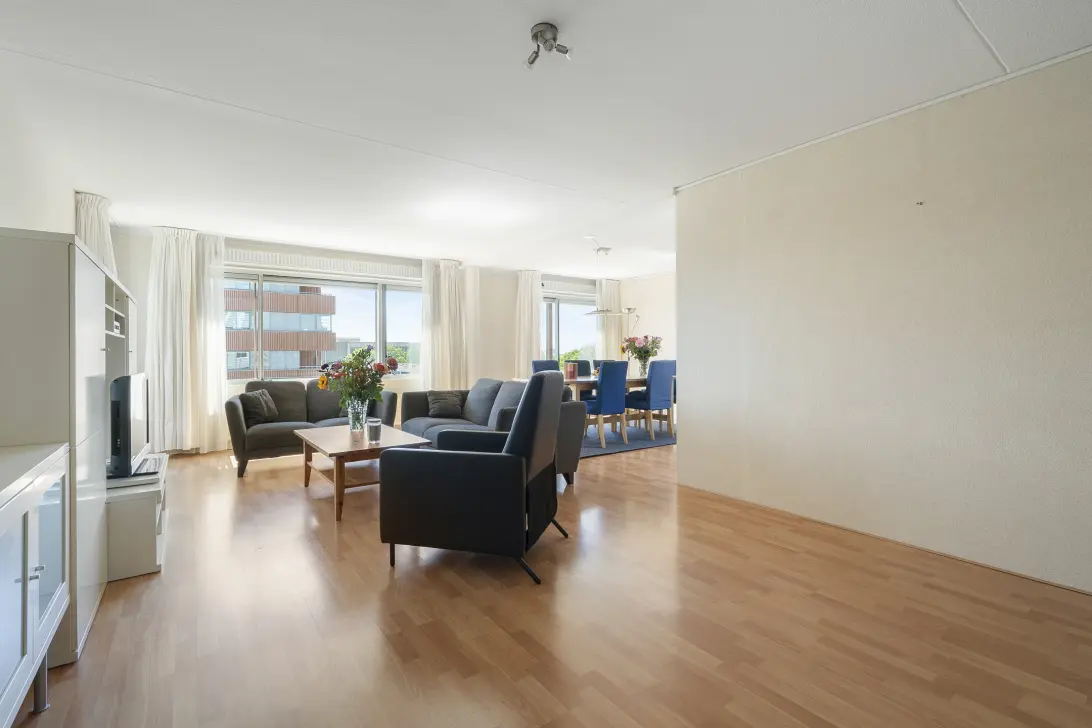 Looking for space, light and comfort in a prime location? This stylish and impeccably maintained corner apartment on the top (sixth) floor offers it all. With a living area of 101 m², two generous terraces facing south and southwest and the option to purchase two private parking spaces in the underground garage, this is a rare opportunity in the heart of Amstelveen.
