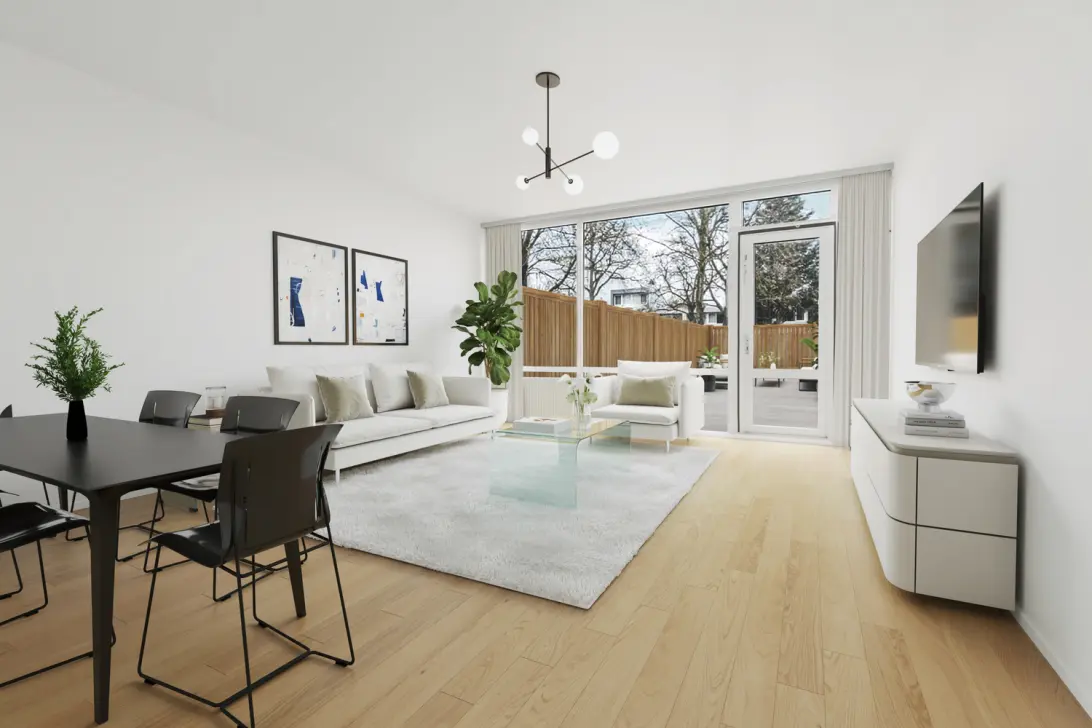 Met een royaal woonoppervlak van circa 91 m² biedt dit huis een oase van rust en stijl. Bij binnenkomst wordt u verwelkomd in een lichte woonkamer met uitzicht op de achtertuin van maar liefst 67 m², gesitueerd op het zuidwesten. De woonkamer sluit naadloos aan op de keuken, die is voorzien van alle basisapparatuur. De begane grond beschikt daarnaast over een aparte toiletruimte en handige opbergkasten.
