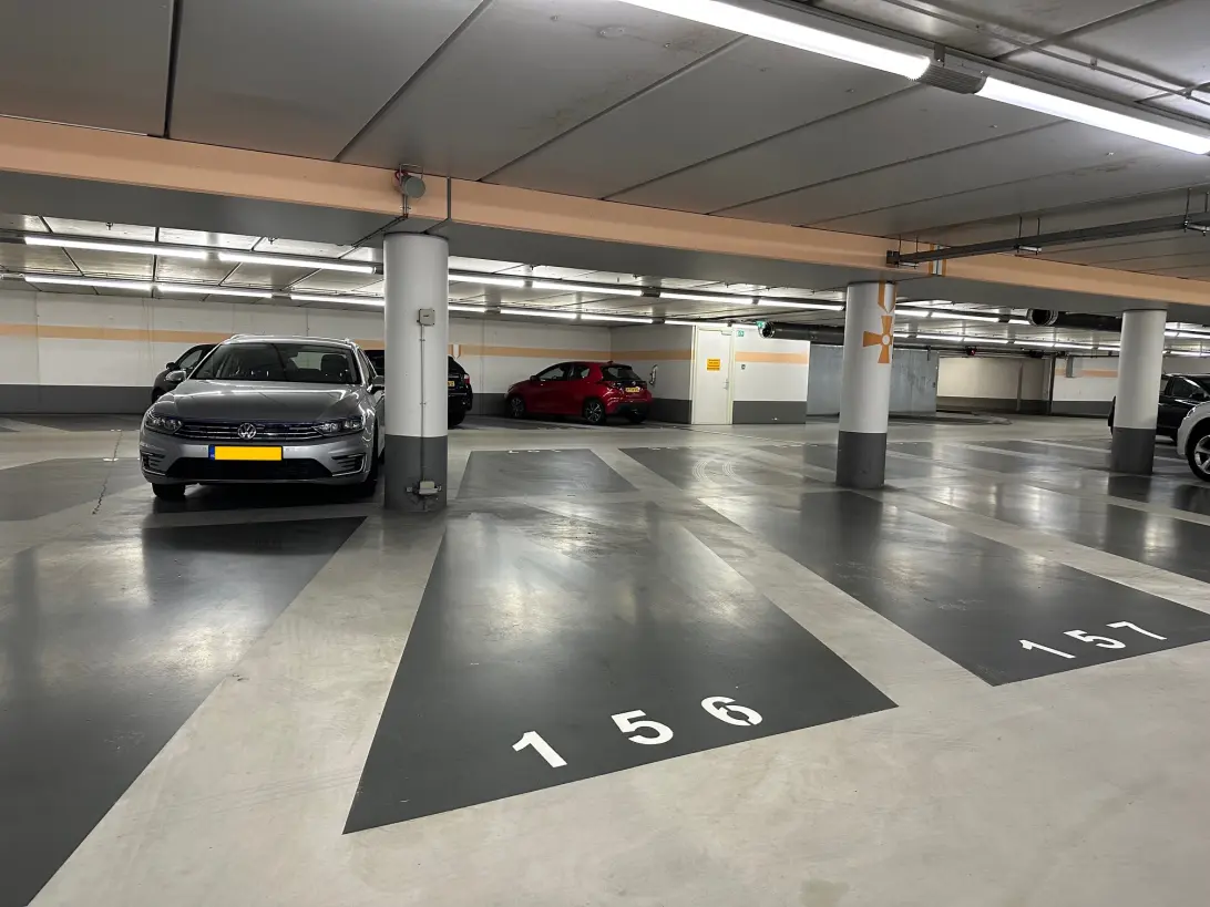 * Privé-parkeerplaats in het voor bewoners afgesloten gedeelte van de Cronjégarage