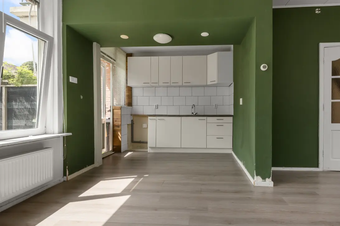 Aan de achterzijde bevindt zich de open keuken, die door de praktische opstelling en de verbinding met het eetgedeelte een fijne centrale plek vormt in huis. De keuken beschikt over diverse inbouwapparaten en biedt genoeg werkruimte om uitgebreid te koken. Vanuit de keuken stap je via de achterdeur zo de zonnige tuin in – ideaal wanneer je in de zomer buiten wilt eten of even met een kop koffie van de zon wilt genieten.