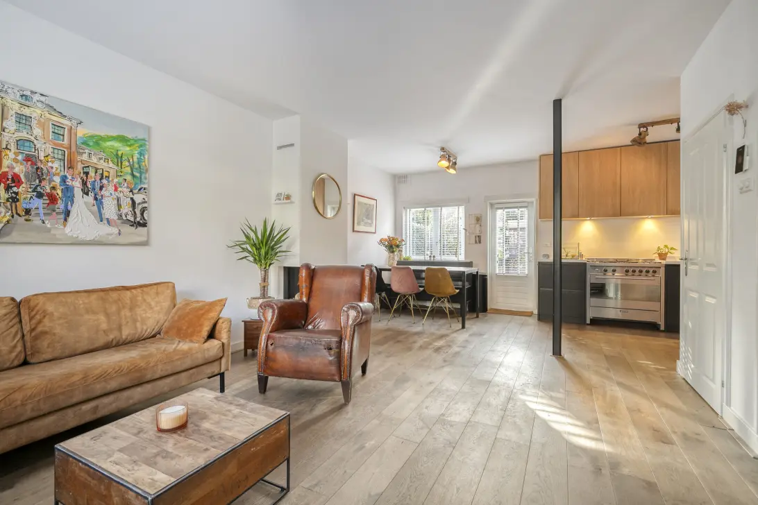 What a delightful single-family home with front and back gardens in the authentic Betondorp neighborhood in Amsterdam East! Located on a dead-end street with a sunny southwest-facing garden bordering an open lawn. A corner house that was partially renovated in 2020 with an extension of the dormer windows and bathroom, an open living room, and a new kitchen. Three bedrooms, a living room with a cozy gas fireplace, and a bathroom with a bathtub and shower. It is wonderful to live here in the quiet Watergraafsmeer neighborhood, yet so close to all the hotspots of Amsterdam East. Make an appointment quickly!