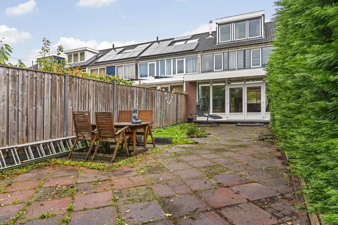 Deze goed onderhouden eindwoning ligt op een prachtige locatie aan de rand van het park Risdammerhout. Aan de achterzijde grenst de woning aan een rustige, autoluwe straat met vrij uitzicht op vrijstaande woningen en het park. In de directe omgeving vind je diverse voorzieningen, zoals winkelcentrum De Huesmolen, scholen en openbaar vervoer — met het NS-station op slechts vijf fietsminuten afstand.
