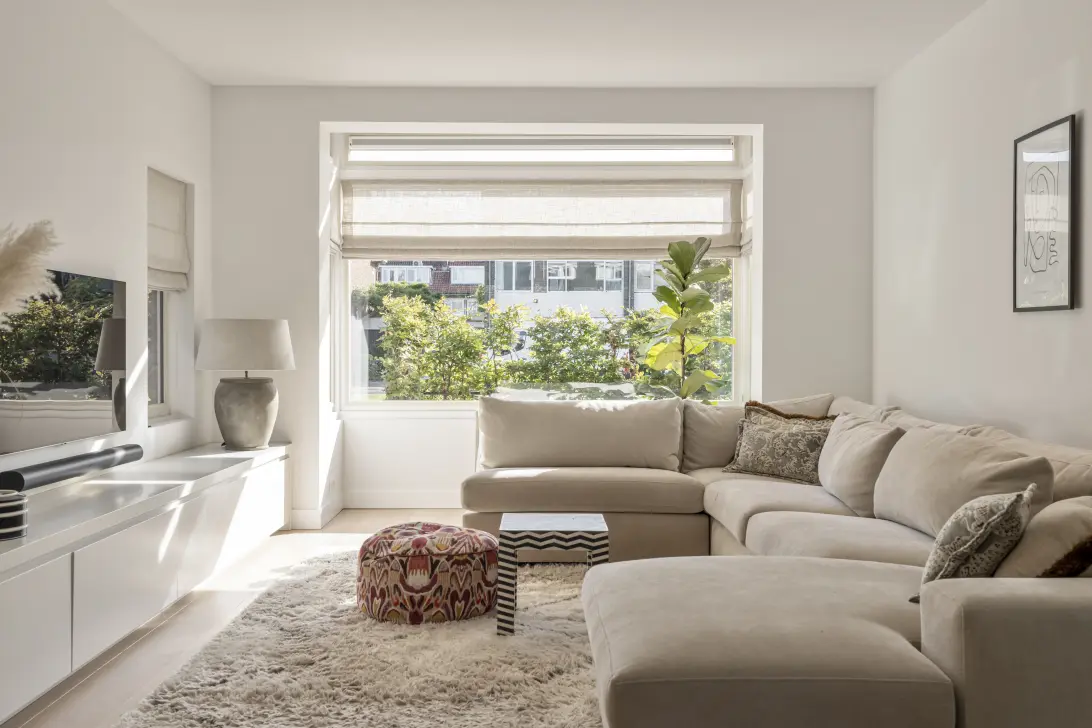 De diepe zonnige tuin op het westen biedt veel privacy en is direct bereikbaar via openslaande deuren vanuit de woonkeuken. Hier geniet je volop van de middag- en avondzon. Perfect voor ontspannen zomeravonden.