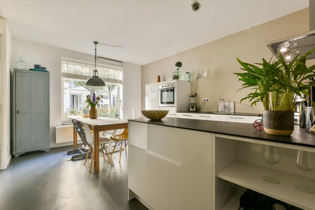 De nette open keuken is voorzien van diverse inbouwapparatuur, waaronder een vaatwasser en keramische kookplaat. Het eiland biedt veel opbergruimte en grenst aan een fijne plek voor een grote eettafel.