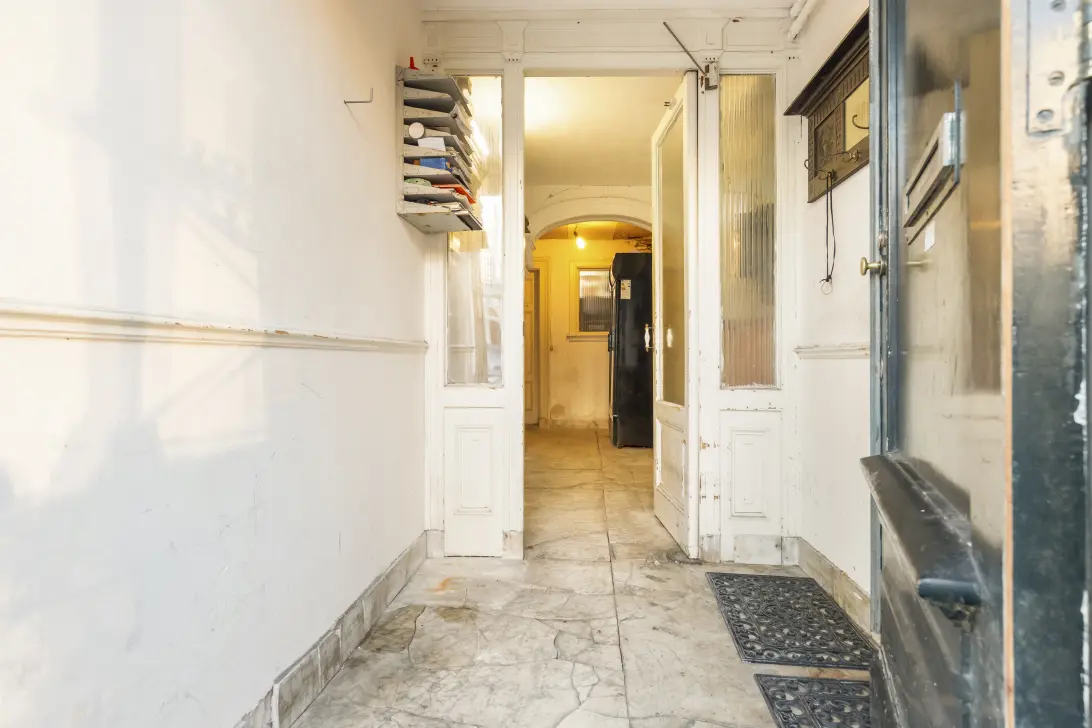 You enter the property through the main entrance, where the spacious hallway leads you to the living room and the kitchen.