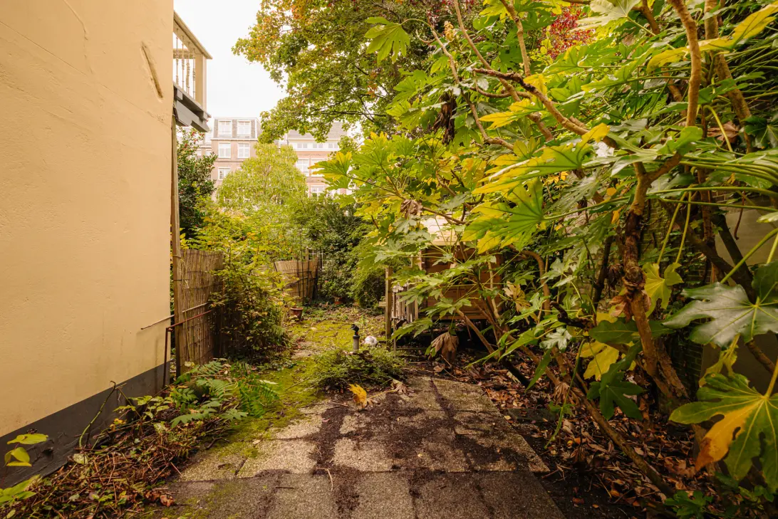 A classic canal house distinguished by its characteristic neck gable, immediately drawing the eye. The entrance is situated directly at street level, as the original stoops have disappeared over time. On the bel-etage, generous southern light enters through the tall windows, accentuating the sense of space. At the rear lies a deep garden, remarkable in both scale and tranquillity. Positioned on the north side, the garden is sheltered and serene.