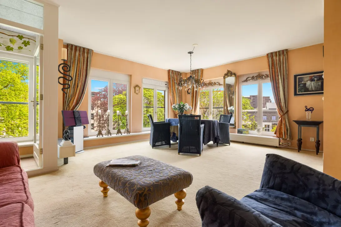 Het betreft een klassiek en luxe 2-kamerappartement, gelegen in een prachtig pand met lift aan de prestigieuze Keizersgracht. Het ruime appartement is voorzien van een grote raampartij aan de achter- én aan de zijgevel. Dat zorgt voor veel licht en een wijds uitzicht over de binnentuin met monumentale bomen aan de overzijde van de tuin. De ramen kunnen volledig worden opengezet waardoor je woonkamer een groot terras wordt. Het appartementencomplex ligt op een toplocatie in hartje Amsterdam, rustig gelegen tussen de Spiegelgracht en de Leidsestraat; mooier kan niet.
