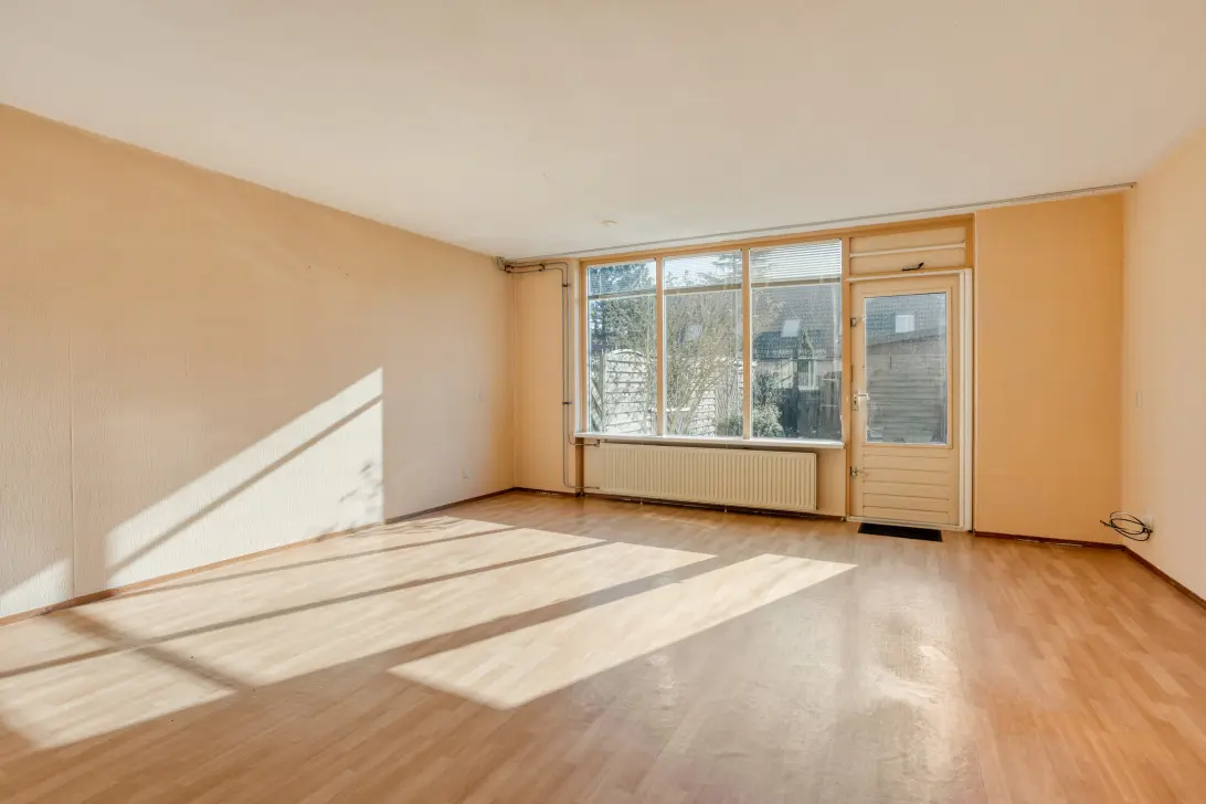 De woonkamer is heerlijk licht dankzij de grote raampartij en de deur naar de achtertuin. Er is volop ruimte voor een comfortabele zithoek en een gezellige eettafel. Of je nu wilt ontspannen na een lange dag of uitgebreid wilt tafelen met vrienden en familie – hier kan het allemaal.
