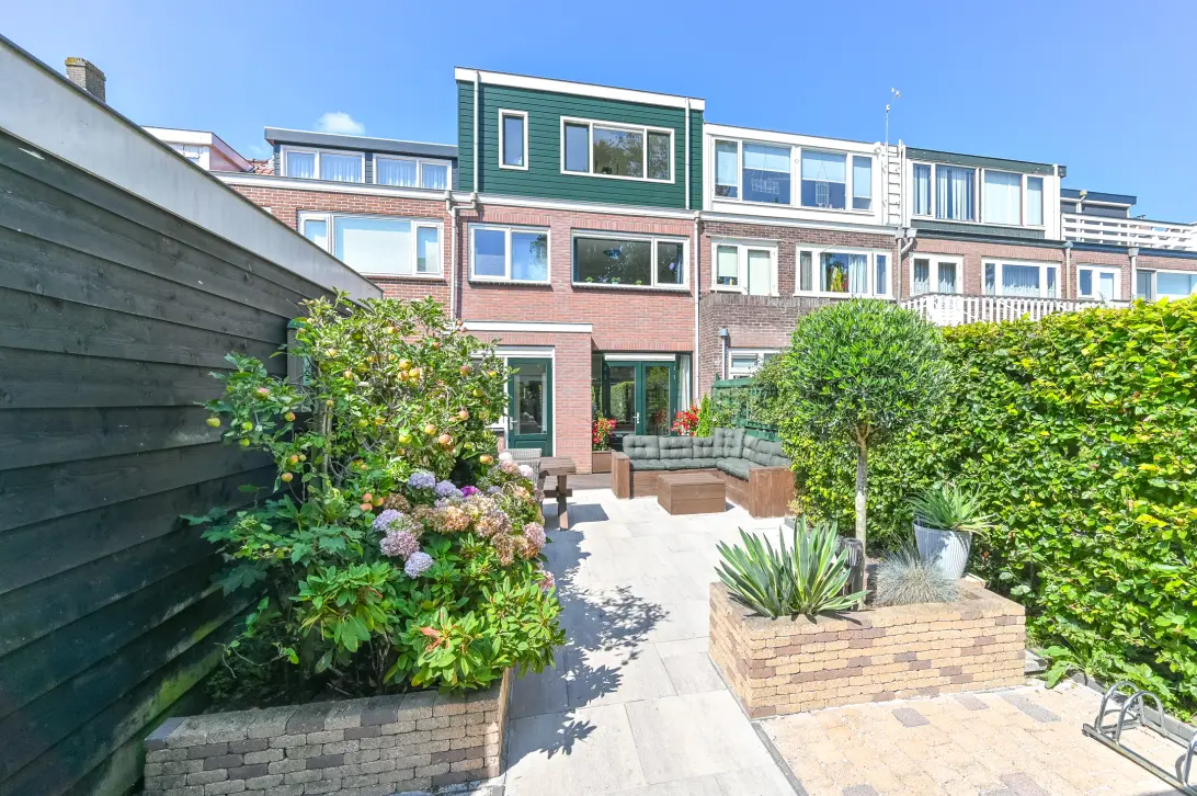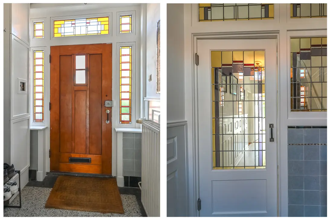 Op zeer gewilde en gunstige locatie gelegen, uitstekend onderhouden, sfeervolle '30-er jaren tussenwoning met voortuin en ruime, fraai aangelegde, zonnige achtertuin met grote schuur en achterom. De woning heeft diverse authentieke details, zoals: granitovloer en wandtegels in de vestibule, glas-in-looddeuren, erker in de woonkamer, kamer-en-suite met glas-in-lood schuifdeuren en diverse paneeldeuren.