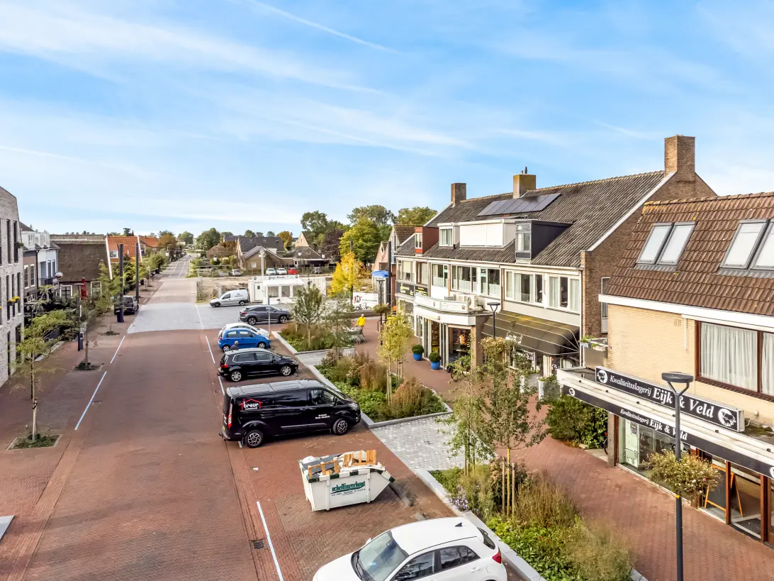 In het gezellige dorpshart van De Kwakel, temidden van winkels en woningen, ligt dit woon-winkelpand met tuin en achtergelegen dubbele garage en bergingen. Het object is het rechterdeel van een blokje van 3. Ernaast zijn een bakkerij met bovenwoning gevestigd en aan de linkerzijde een supermarkt met bovenwoning.