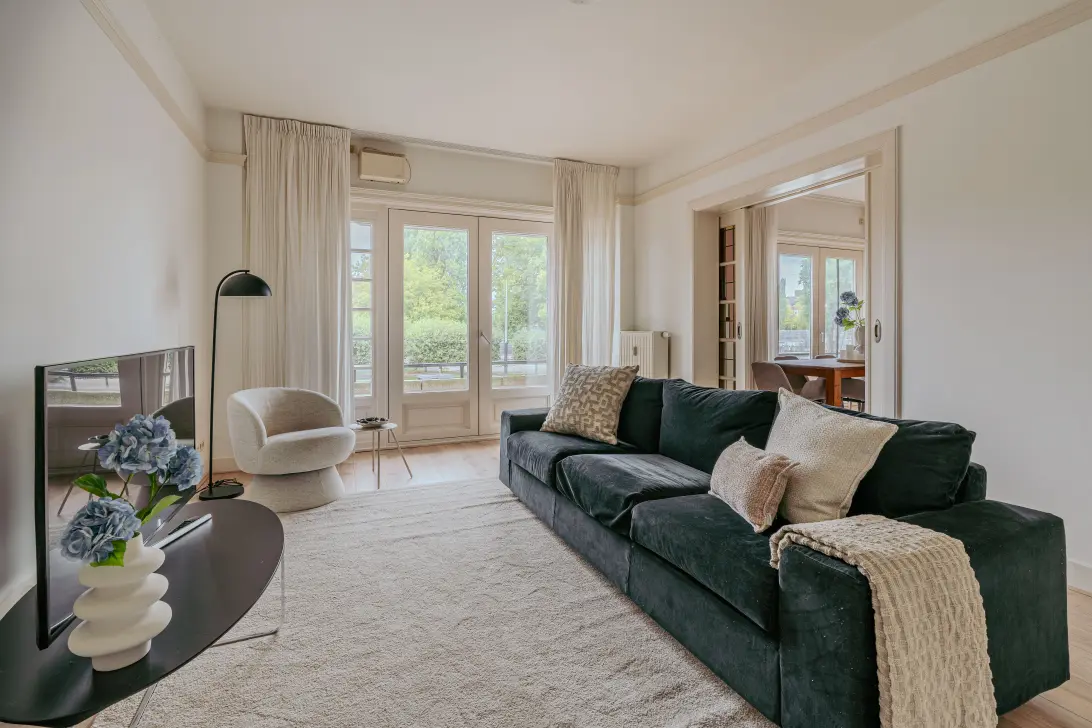 Take the elevator to the second floor. The apartment itself is spread over 3 floors. On the entrance floor is the first bedroom. Via a round staircase you can reach the living floor with an open kitchen and direct access to the spacious and sunny balcony. It overlooks the communal and beautifully maintained courtyard, where you find yourself in an oasis of peace, but are still right in the center of Amsterdam. On the top floor there is another spacious bedroom with its own shower and toilet room. Additional outdoor space can be found in the spacious and beautifully landscaped courtyard. Here you can enjoy the sun all day long. The Nationally monumental building is located around the corner from the Amstelveld and the Utrechtsestraat with its many nice shops, restaurants and cafes. On the facade stone of the facade of no. 322, an 'Easterling' is depicted, with a share around his waist. In the 17th century there were many merchants from the Baltic Sea region in Amsterdam, they were called 'Easters'. In 1993, this 'trous Pool' was restored and colored.