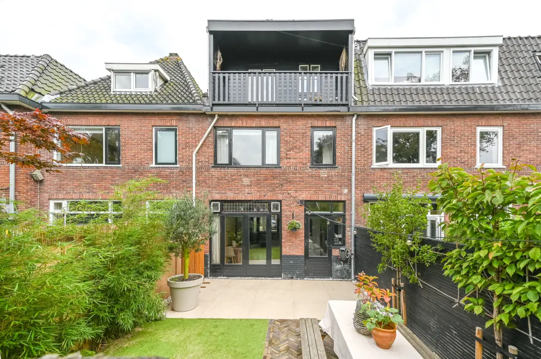 Deze ruime woning (5 slaapkamers!) is stijlvol verbouwd: voorzien van houten vloeren op alle verdiepingen, fraai afgewerkt met gestucte wanden en plafonds en in de vestibule, hal en woonkamer diverse glas-in-loodramen.