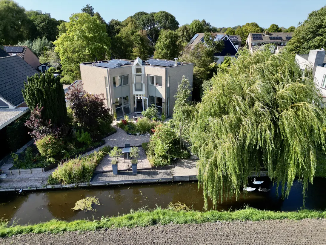 De tuin is prachtig aangelegd met verschillende terrassen gelegen in de zon maar ook in de schaduw. Het vrije uitzicht over de landerijen zorgen voor veel privacy en rust. Er is een extra houten vrijstaande berging voor al je tuingereedschap. Wel zo praktisch toch! Ook zo praktisch is de carport aan de zijkant van het huis. Door de enorme oprit kun je hier ook meerdere auto's parkeren. De omgeving is lekker rustig en groen (park op loopafstand), kortom heerlijk wonen dus!