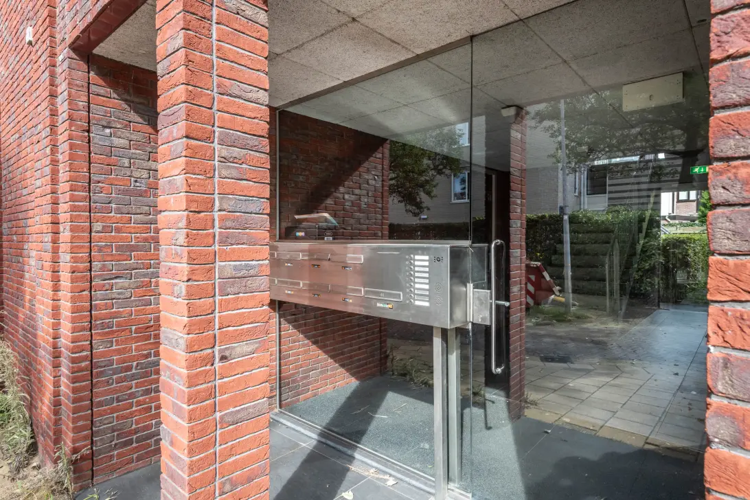 Afgesloten centrale entree met bellentableau en brievenbussen. Toegang tot de ruime privéberging, de gezellige gezamenlijke binnentuin en het trappenhuis.