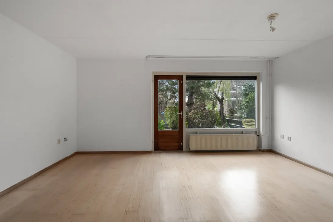 Via de entree kom je in de lichte en ruime woonkamer. Dankzij de grote ramen en het vrije uitzicht op de achtertuin voelt de living meteen prettig en open aan. Er is voldoende ruimte voor een comfortabele zithoek én een eettafel. Aan de voorzijde bevindt zich de keuken met zicht op het hofje.