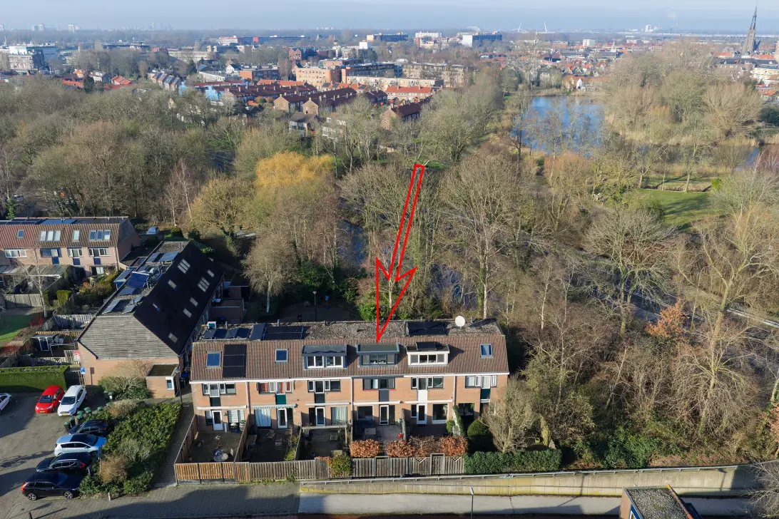 De zolder biedt een fijne werkhoek en een royale vierde slaapkamer met een grote dakkapel uit 2023. Deze kamer is afgewerkt met praktische inbouwkasten en een elektrisch rolluik. Aangrenzend bevindt zich een handige was-/opbergruimte met dakraam.