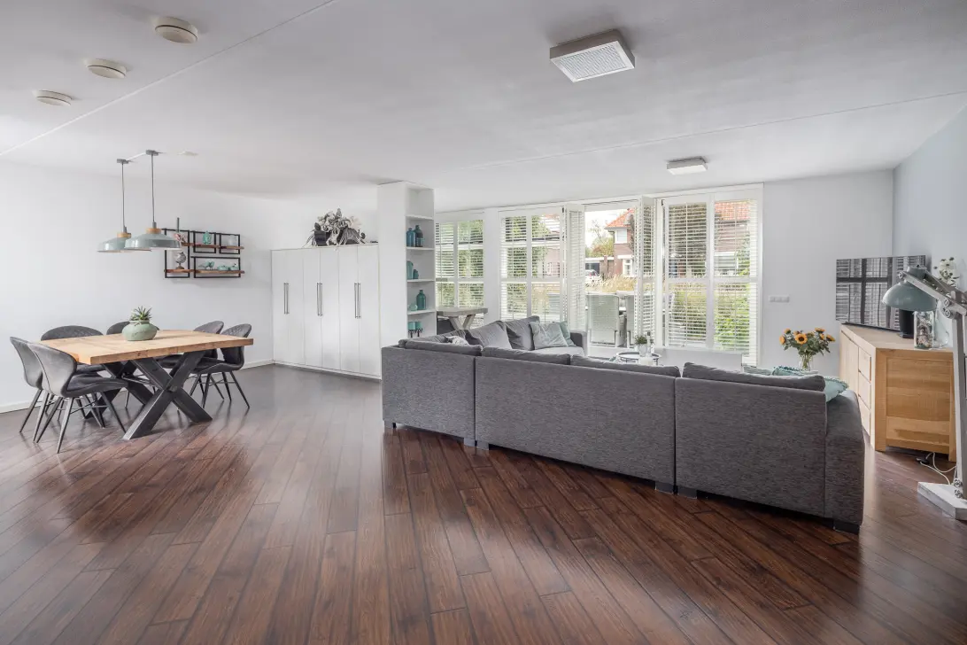 Aan de binnenzijde van deze fraai vormgegeven 2/1 kapwoning maakt de woning indruk door de royale en lichte ruimtes. De woonkamer van circa 58 m² is voorzien van gestucte wanden, elegante shutters en een schuifpui en openslaande deuren naar de terrassen, waardoor binnen en buiten perfect samensmelten. Met modern sanitair en maar liefst 5 ruime slaapkamers op de verdiepingen is dit het grootste type 2/1 kapwoning van Hoogkarspel, ideaal voor grote gezinnen die comfort, leefruimte en sfeer zoeken in één complete woning.