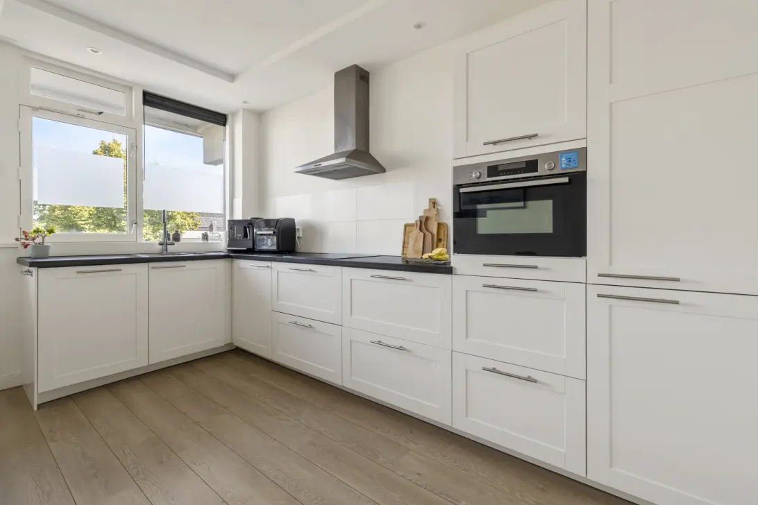 Dit ZONNIGE en GEMODERNISEERD ruime 3-KAMERAPPARTEMENT met WOONKEUKEN en groot BALKON op het ZUIDEN is gelegen op de eerste verdieping van een kleinschalig appartementencomplex in het prachtige Bussum-Zuid. Het complex is voorzien van een liftinstallatie en biedt onderdak aan inpandige prive parkeergarage en grote berging. Op struikelafstand zijn voorzieningen zoals supermarkt en andere kruideniers voorhanden. Uitvalswegen, NS treinstation en heide zijn eveneens in de directe omgeving te vinden.