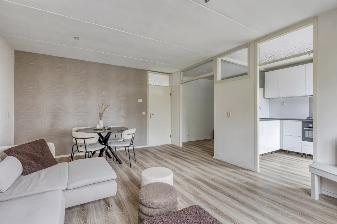 Het appartement is voorzien van een moderne keuken, doorlopende laminaatvloer, eigentijdse wandafwerking en deels gemoderniseerde badkamer en toilet.