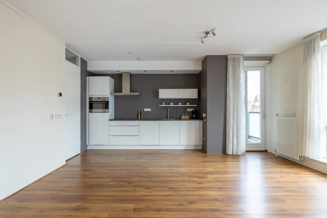 De woonkamer is heerlijk licht, en dankzij de open keuken blijf je altijd in contact met je gezelschap. De moderne keuken is van alle gemakken voorzien en koken wordt hier een feestje. Ook vanuit de woonkamer stap je zo het balkon op.