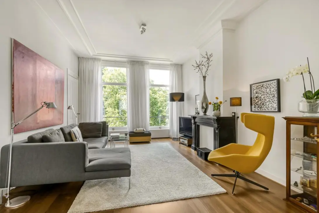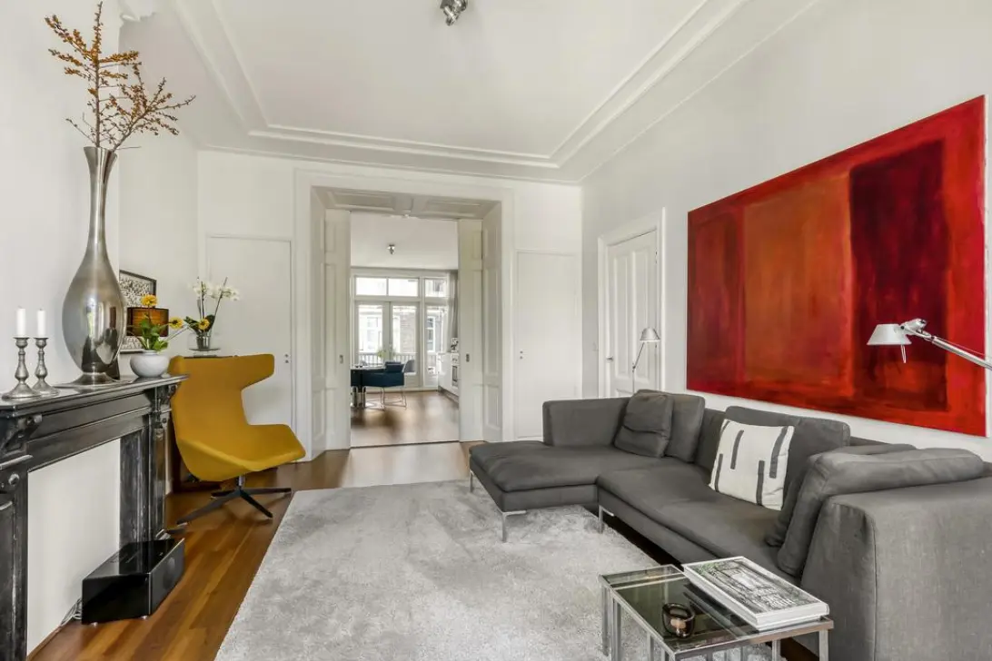 Aan de voorzijde bevindt zich de living met een prachtig vrij uitzicht richting het Vondelpark en het Emmaplein. Privacy is hier vanzelfsprekend. Dankzij de ensuite deuren kan deze ruimte desgewenst worden afgesloten voor extra rust of intimiteit.