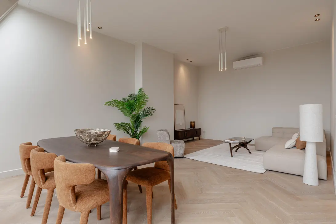 Aan de Koninginneweg in het prestigieuze Amsterdam Oud-Zuid bevindt zich dit uitzonderlijk luxe appartement van 102,4 m², gelegen op de vierde verdieping. De woning onderscheidt zich door hoge plafonds, een bijzondere dakconstructie met grote dakramen aan de achterzijde en een royale leefruimte met veel licht en vrij uitzicht over groen. Met twee slaapkamers, twee badkamers en een royaal dakterras van 31,2 m² is dit een unieke woonplek op loopafstand van het Vondelpark en het Museumkwartier.