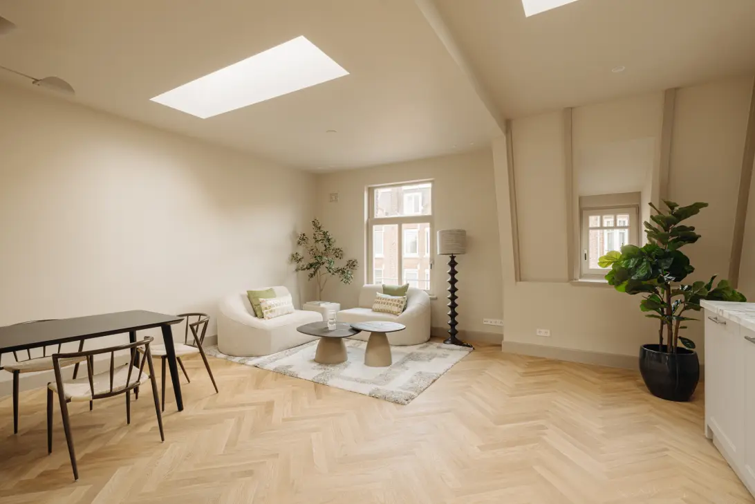 In a beautiful location in Oud-Zuid, we are pleased to offer this upper-floor apartment (gross floor area 106 m², usable area 76 m²). The entire property has been luxuriously renovated and features a wonderful rooftop terrace! The apartment boasts a stunning oak herringbone floor, a kitchen finished with Italian Calacatta Gold marble, and two full-sized bedrooms. It is ideally located in Oud-Zuid, just around the corner from Vondelpark and Amstelveenseweg. The property is situated on freehold land and has an energy label A.