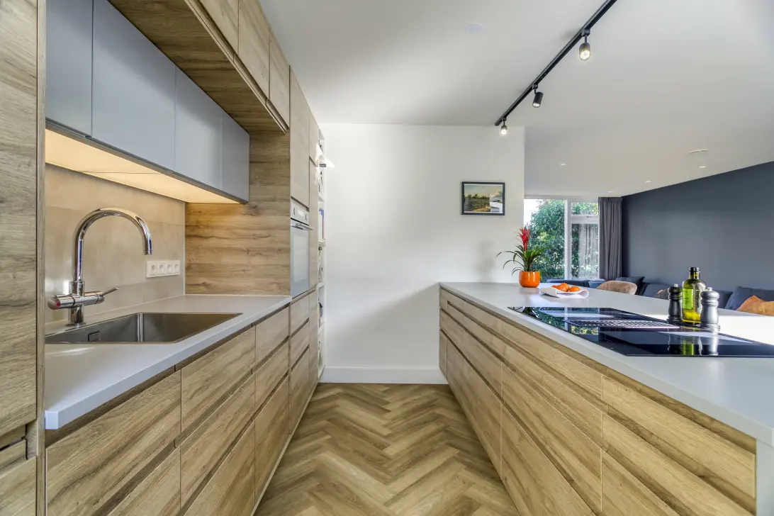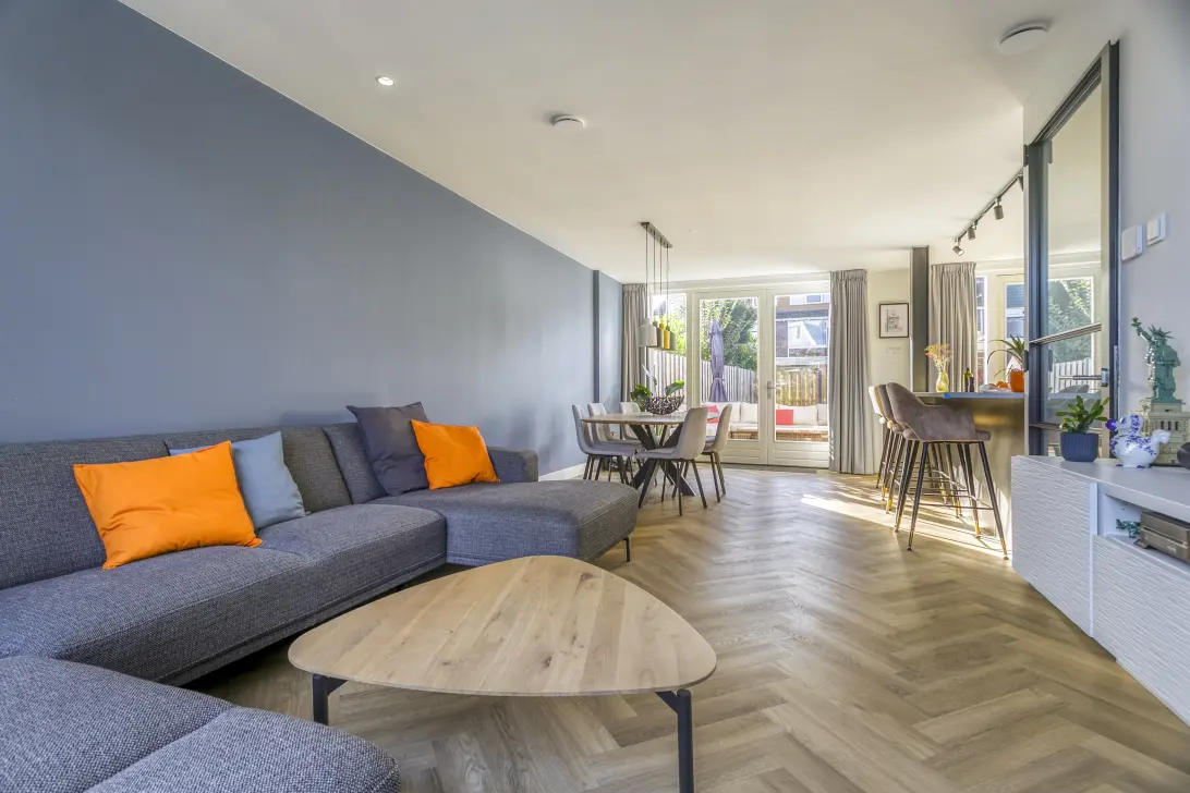 Deze oorspronkelijk in 1966 gebouwde woning is gerenoveerd naar bijna nieuwbouw kwaliteit en heeft aan de achterkant een korte uitbouw. De oorspronkelijke houten constructievloer is vervangen door een betonnen systeemvloer, natuurlijk met vloerverwarming
