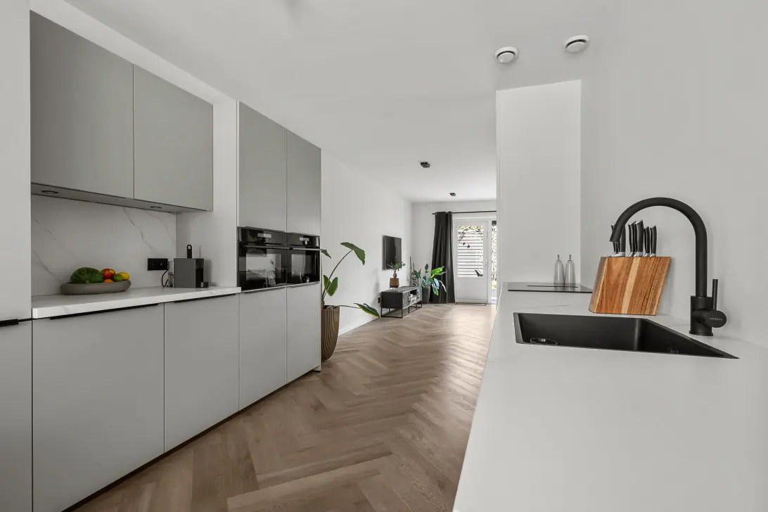 In 2023 is de woning op de begane grond en eerste verdieping volledig gemoderniseerd. De begane grond is daarbij compleet vernieuwd met vloerverwarming, glad gestuukte wanden en plafonds, een nieuwe PVC-vloer en een moderne keuken met inbouwapparatuur. Het geheel vormt een rustige, eigentijdse leefruimte waar alles klopt.